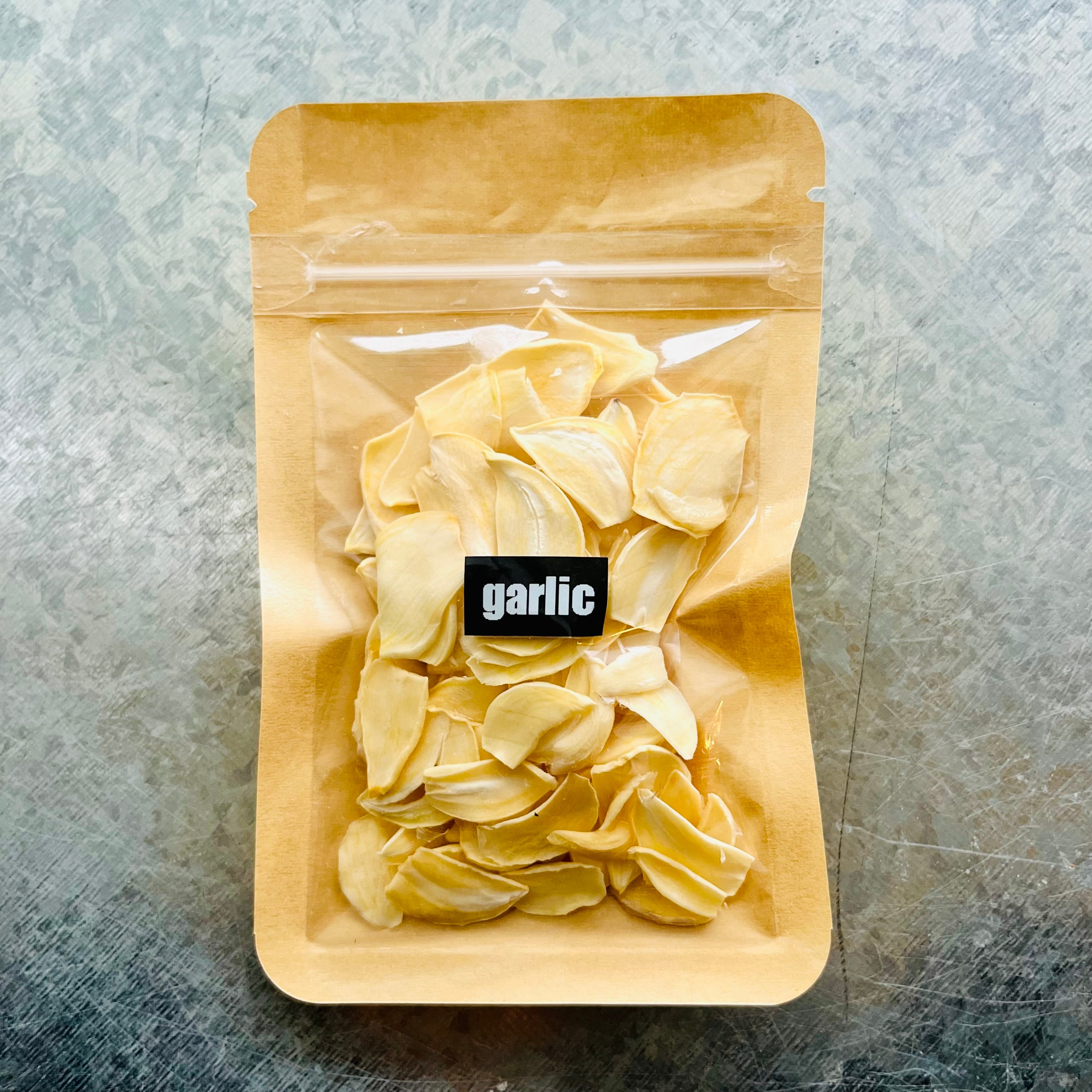 無農薬で育てたニンニクを乾燥させた無添加ガーリックチップです。