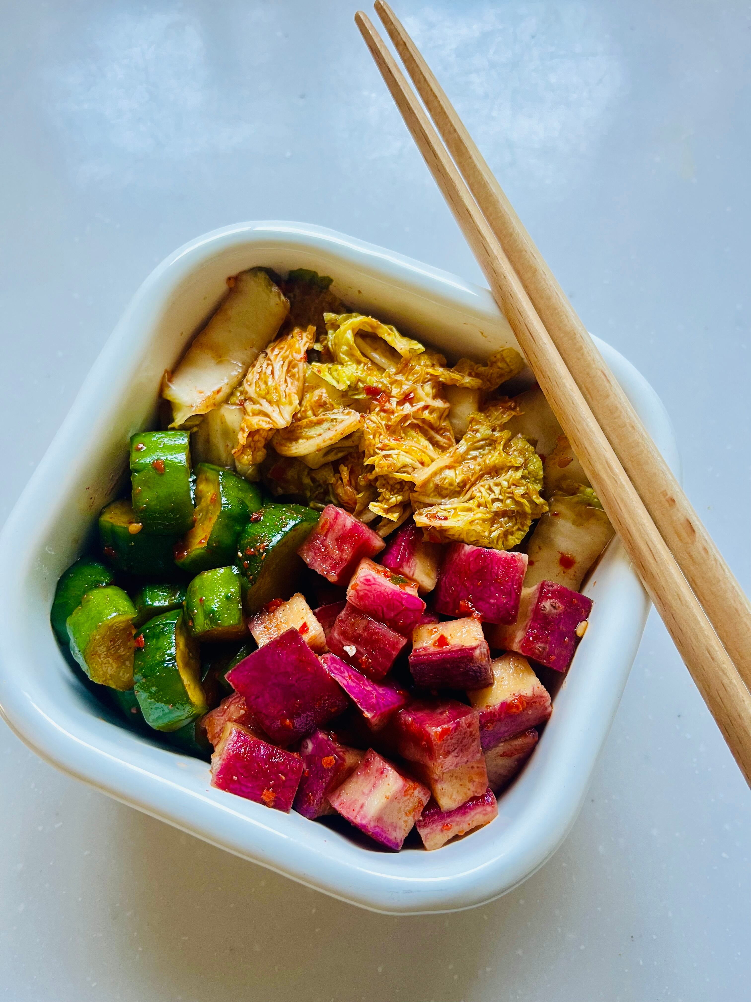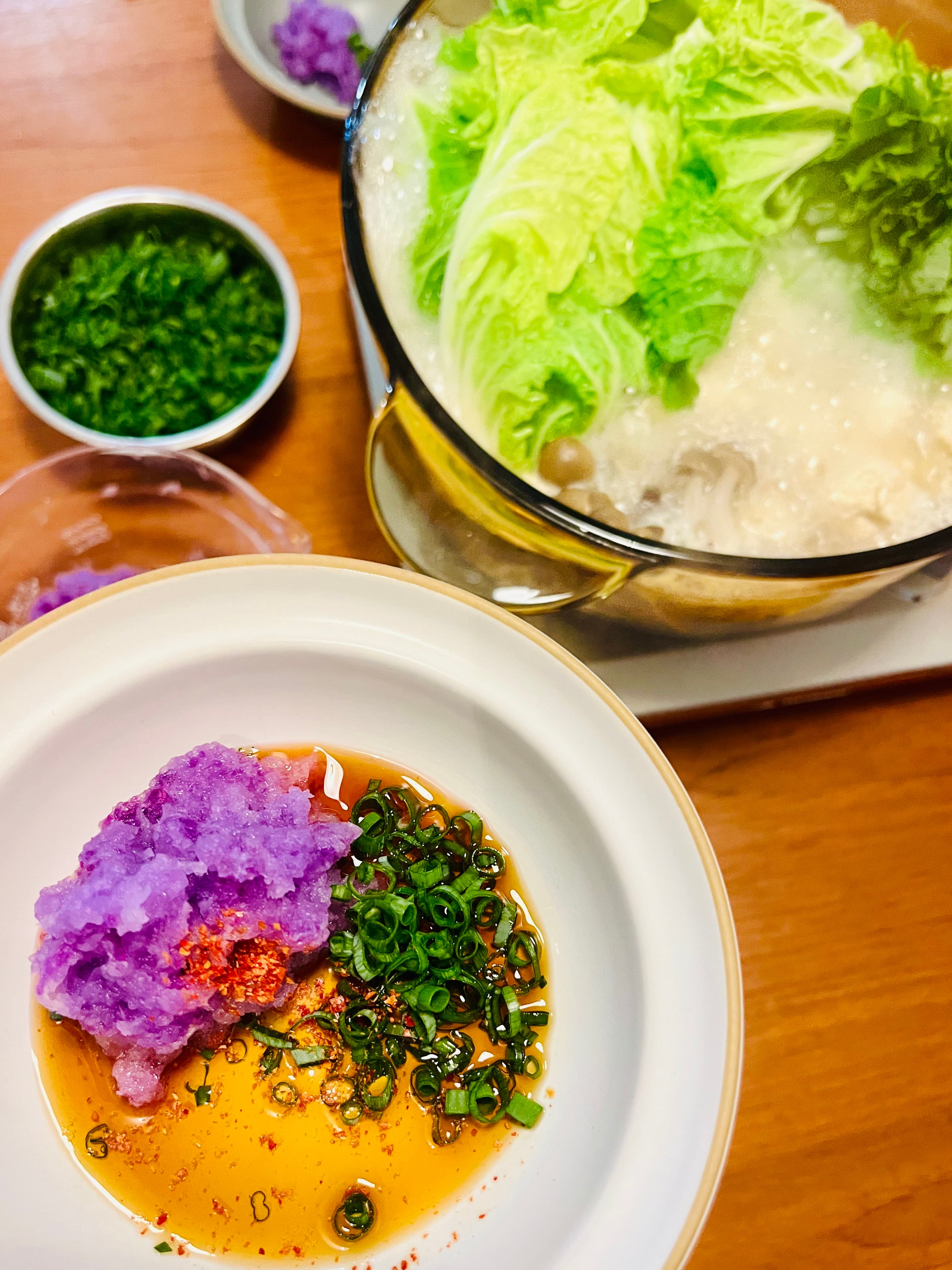 ミニ白菜と一緒に作ると黄緑と紫が色鮮やか✨