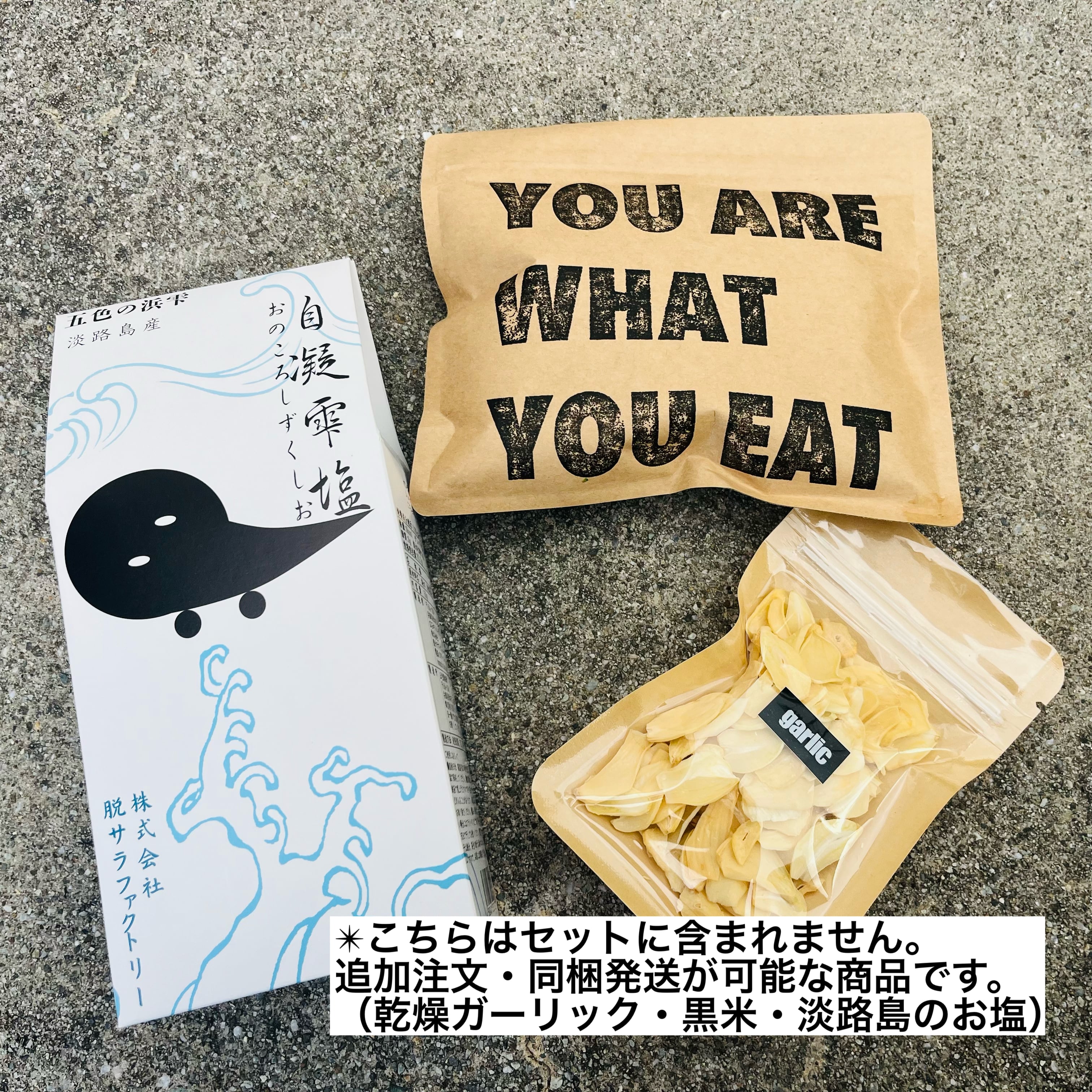 ※ドライガーリック、黒米、淡路島のお塩(1kg入りもあります)は