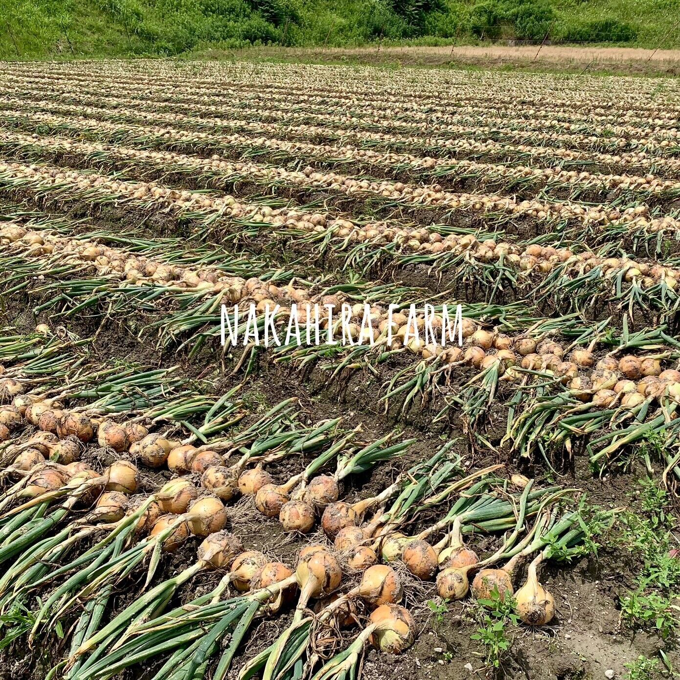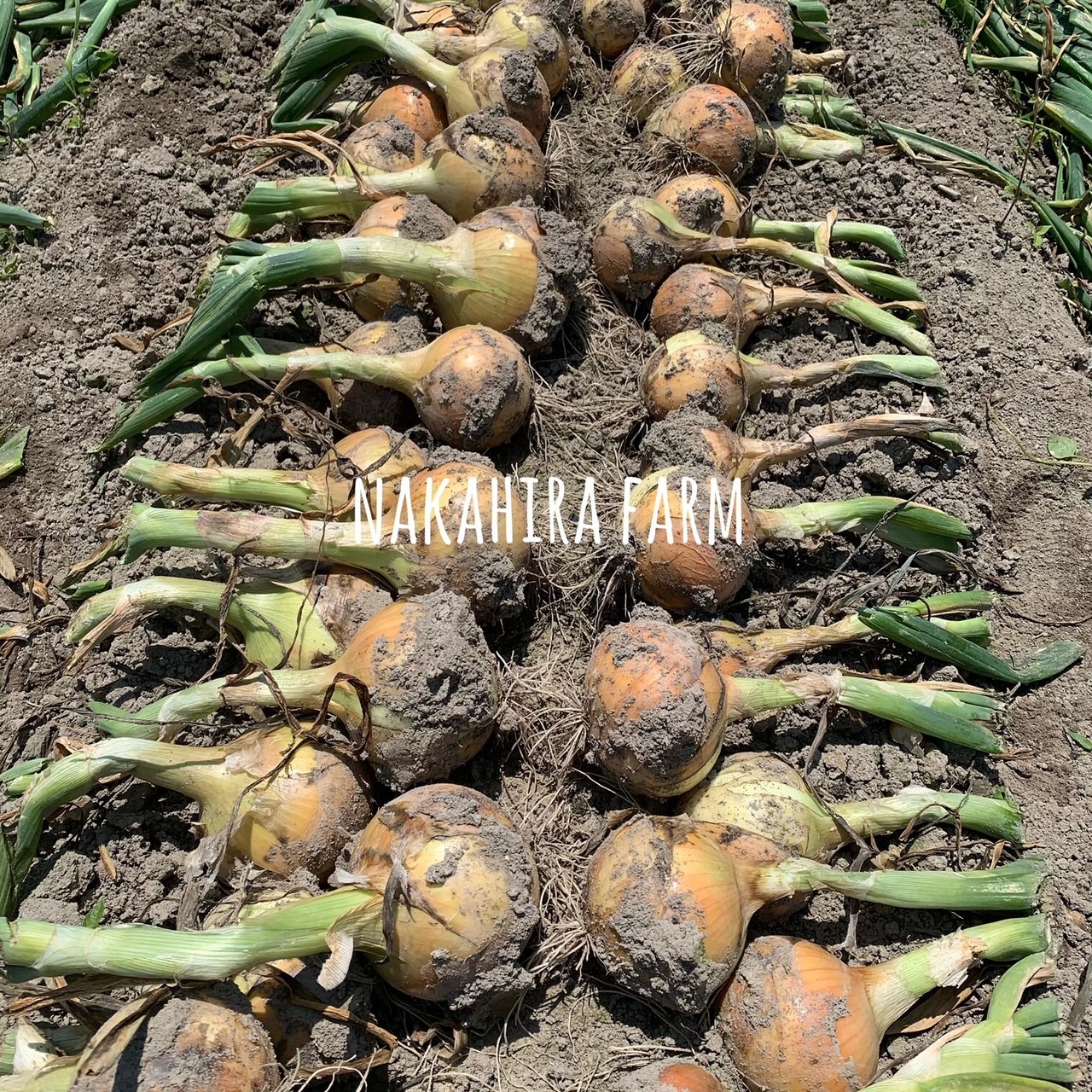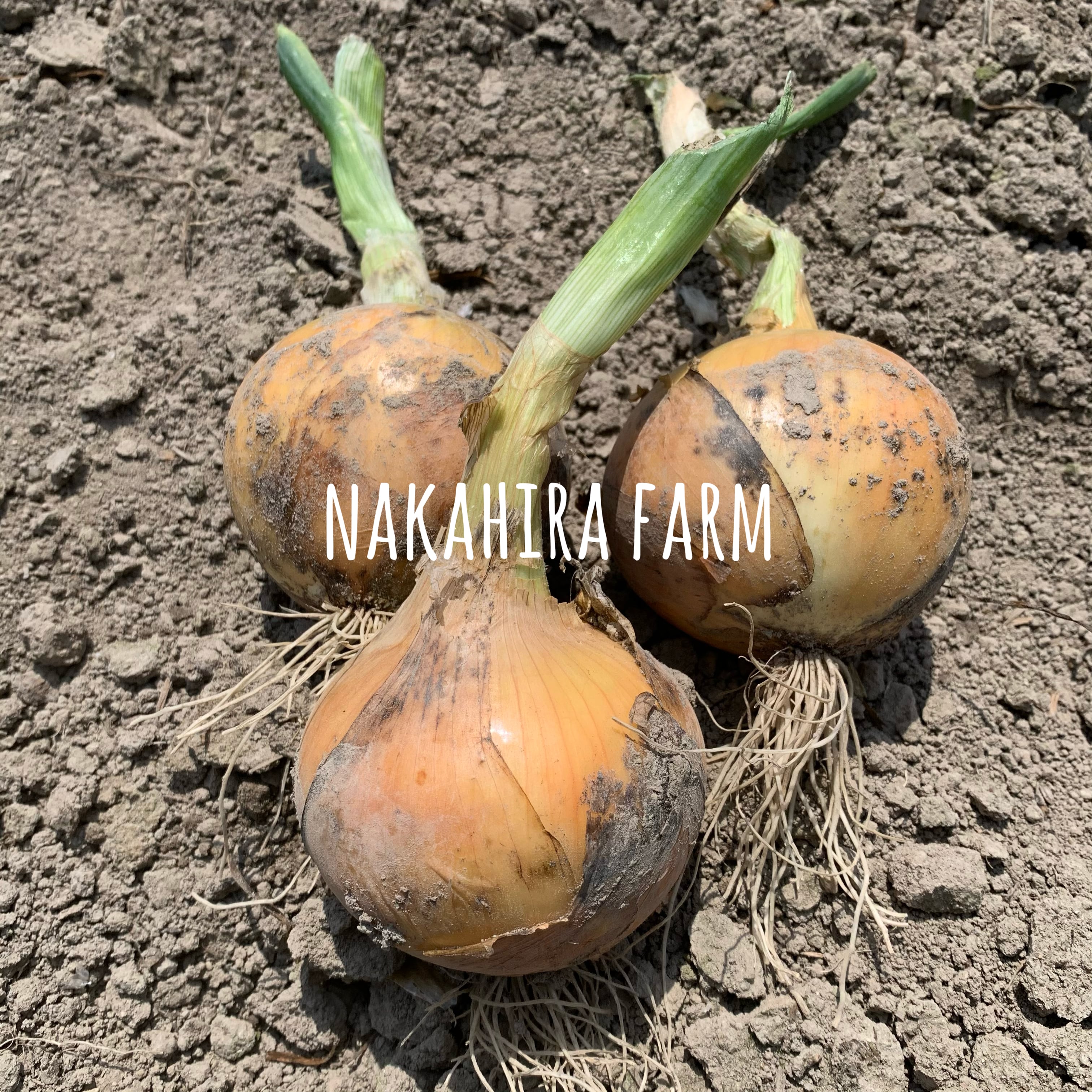 中平ファームでは有機栽培、慣行農業の両方の知識と経験を活かして減農薬で野菜を育てています。この玉ねぎも通常の1/5程度で栽培しました。