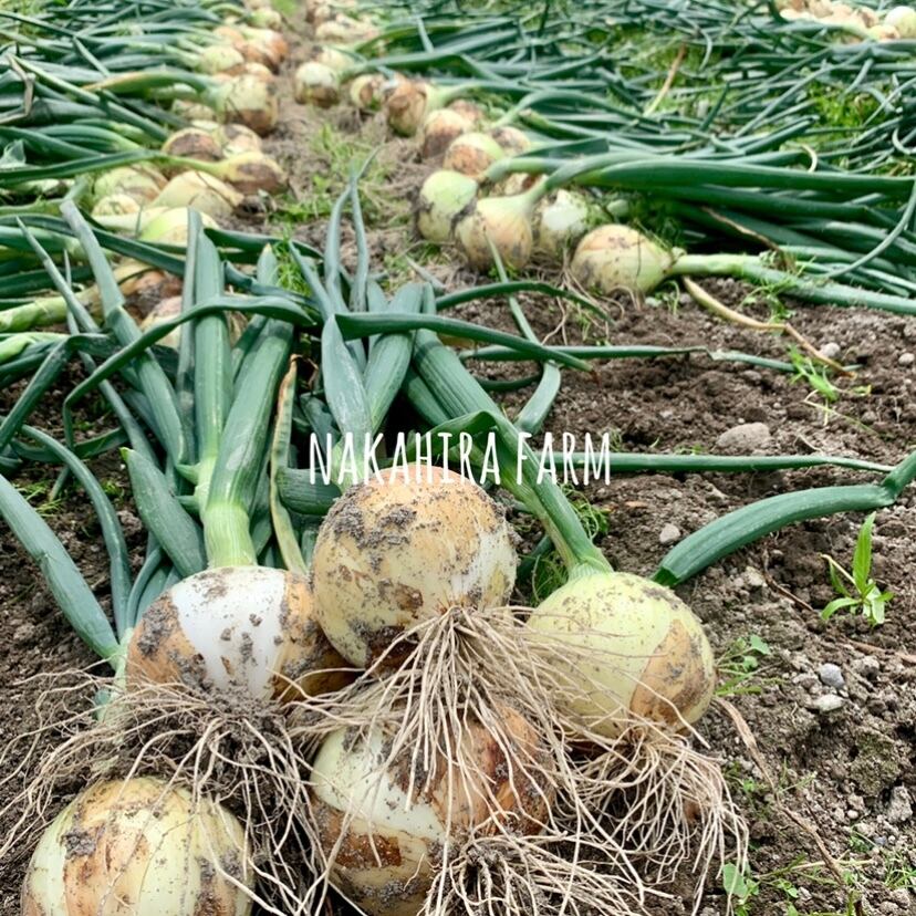 わたしたちは夫婦2人ですべての作業を行っています。種まきからすべて手作業で苗引き、定植、収穫、箱詰めを行います。何トンとある玉ねぎですが、ひとつひとつの玉ねぎ全部に必ず触れているのだと思うと愛着もひとしお!みなさまの元にお嫁入りさせていただく気持ちでお届けいたします:)